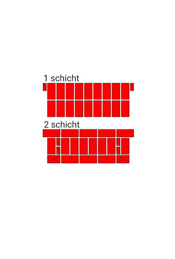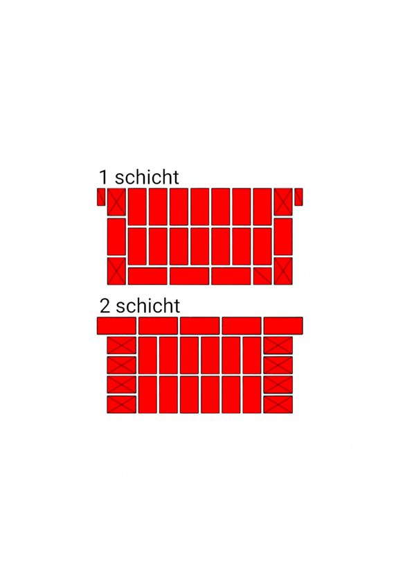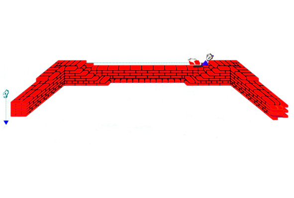 Fig.9. Die Reihenfolge der Mauersteine in der Mauer Einschränkung. Die Dicke der Mauer beträgt 2 Ziegel.