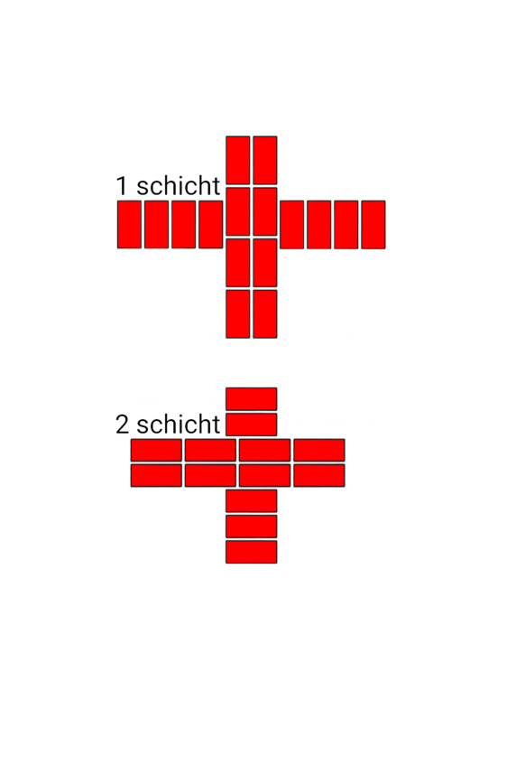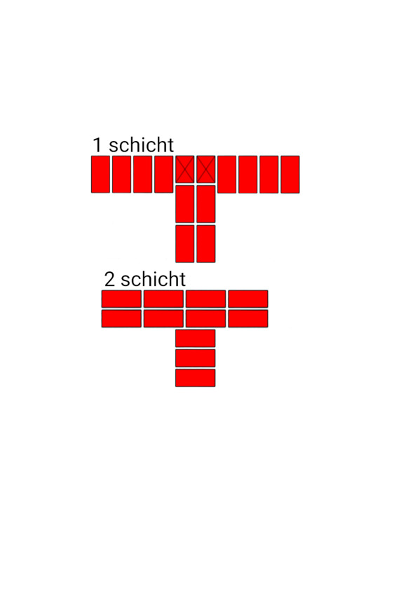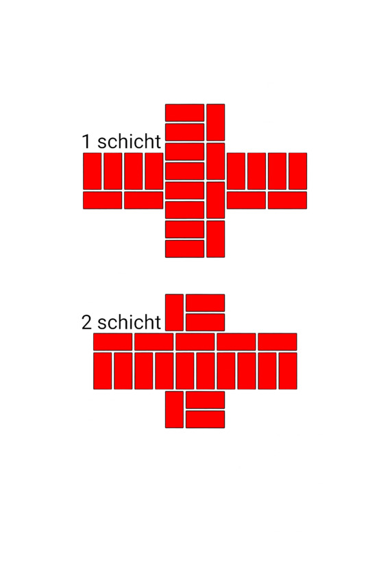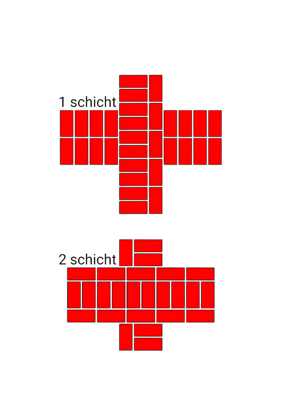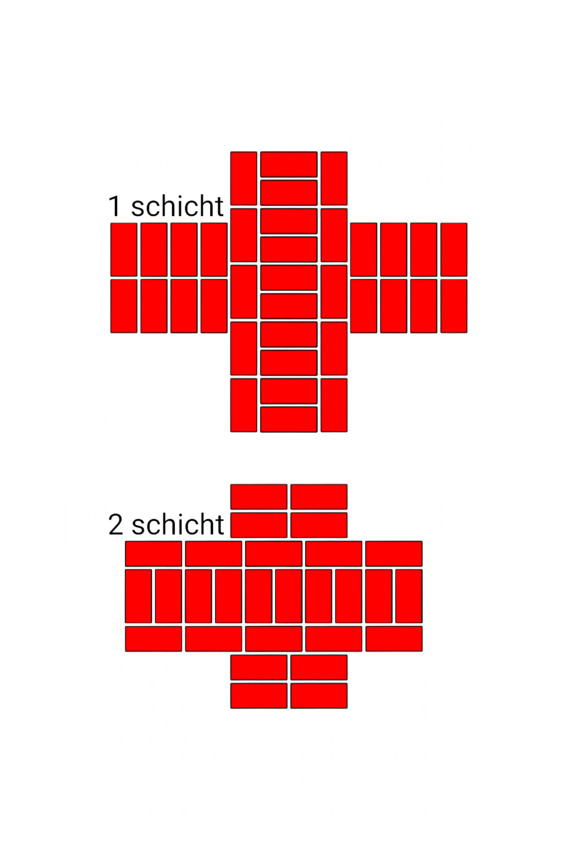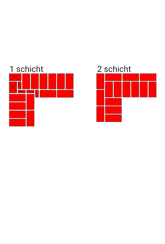 Fig.18. Die Reihenfolge der Ziegelsteine in den angrenzenden Wänden. Die Dicke der Wände beträgt 2 und 2 Ziegel.