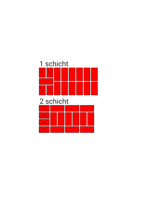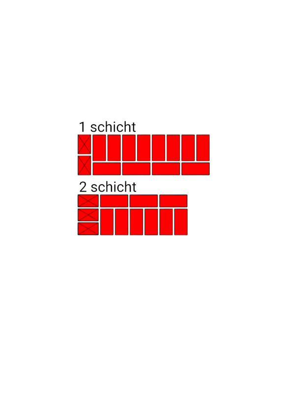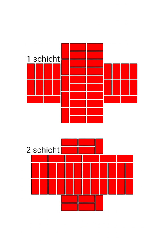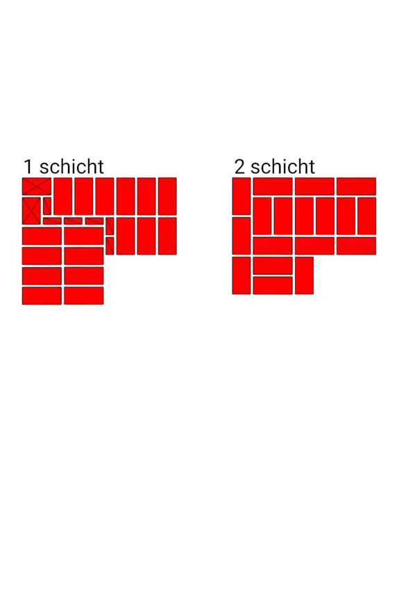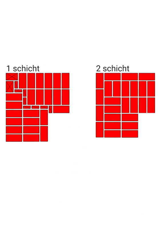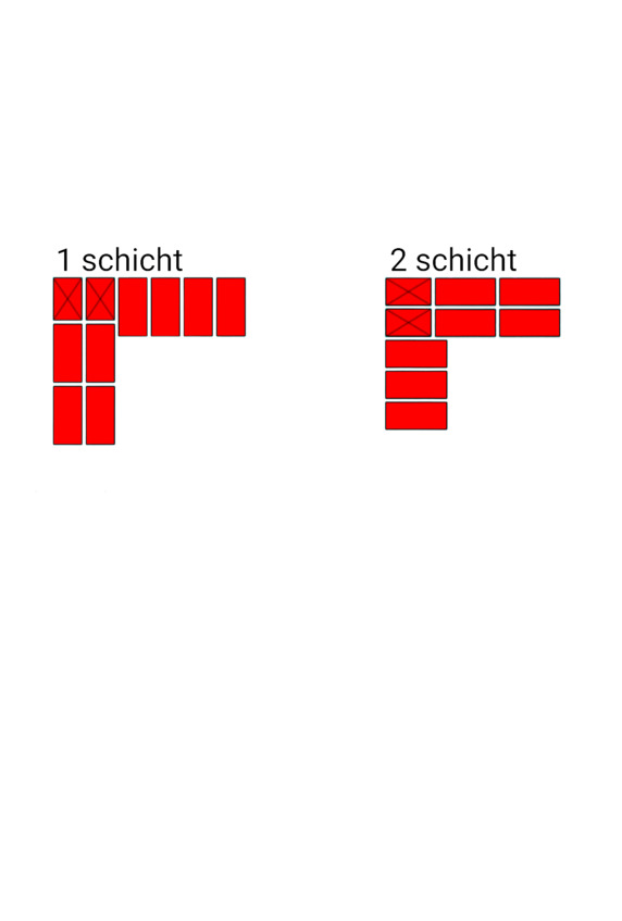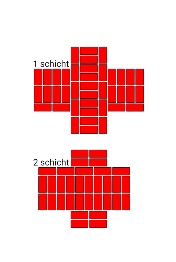 Fig.18. Die Reihenfolge der Ziegelsteine in den angrenzenden Wänden. Die Dicke der Wände beträgt 2 und 2 Ziegel.