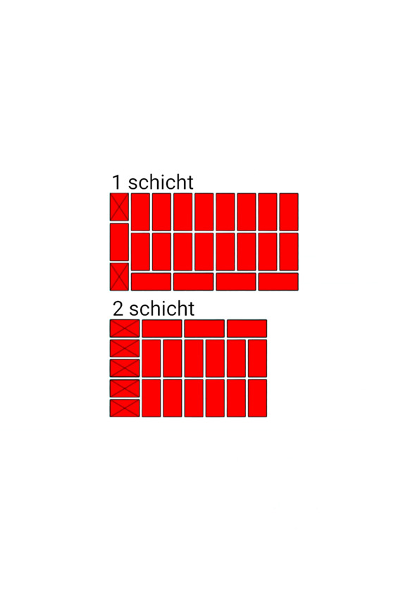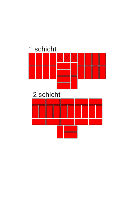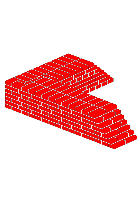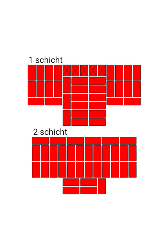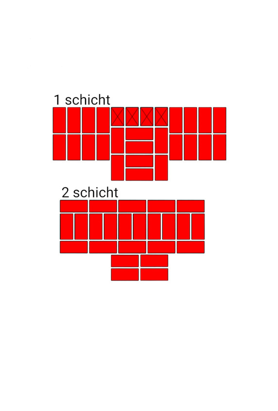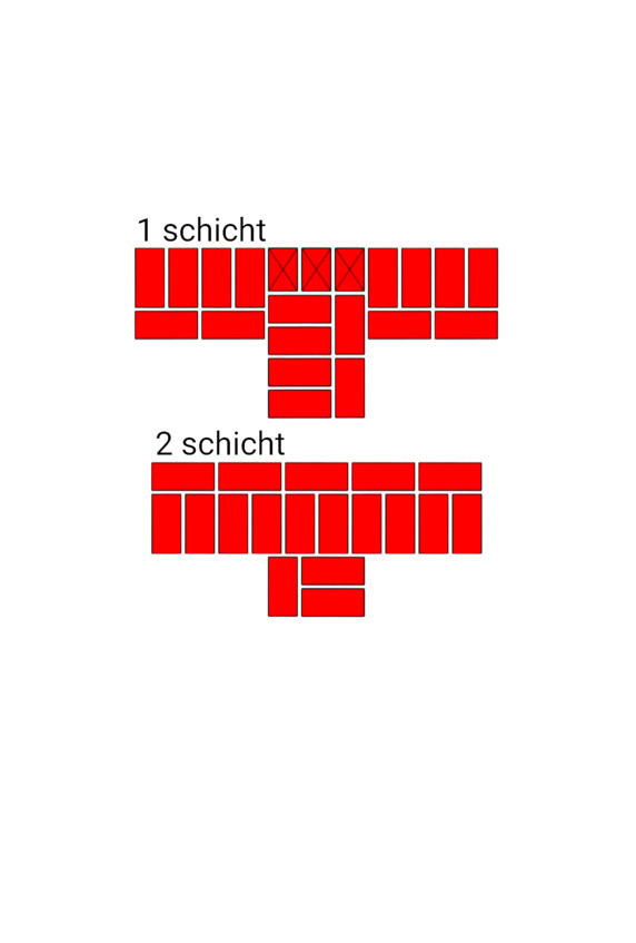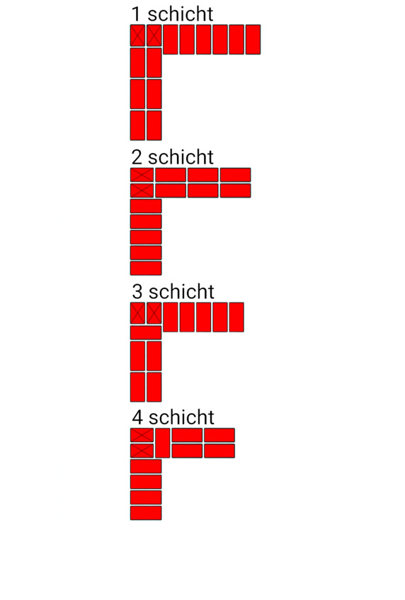 Fig.7. Die Reihenfolge der Mauersteine in der Mauer Einschränkung. Wandstärke 1 Ziegel.