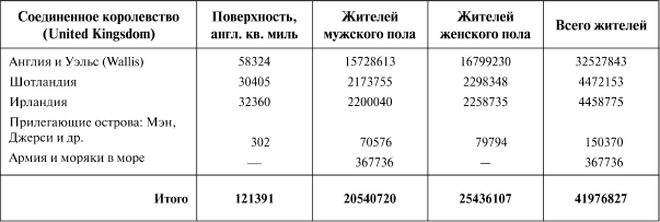 Так как при современном распределении обладания землею наибольшее число жителей и наибольшая поверхность Земли соединены под державою английского короля или императора Британии, то наше перечисление сведений, относящихся к народонаселению великих держав, начинается именно с Англии. […]