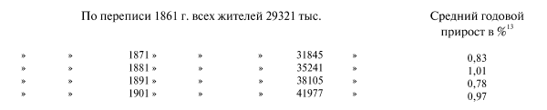 Общее число жителей с 1861 г. возрастало, судя по соответственным переписям, довольно неравномерно: