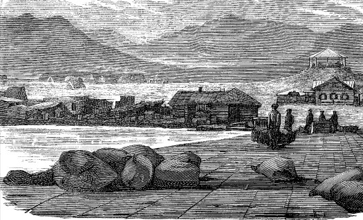 Нефтяные промыслы близ Баку. Гравюра XIX в.