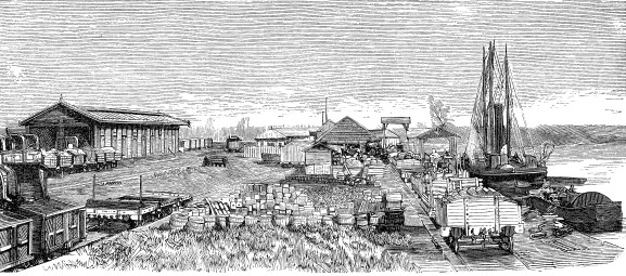 Поти, станция Закавказской железной дороги. Гравюра XIX в.