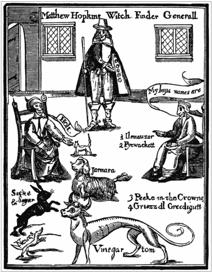 El concepto de espíritu familiar no pasó desapercibido para los demonólogos del periodo. Para 1616, aquellos seres idiosincrásicos del discurso demonológico inglés llevaban más de medio siglo de presencia en la literatura popular sobre brujería. Incluso, durante la segunda década del siglo XVII, adquirieron un mayor protagonismo en aquellas narrativas, lo que aumentó el interés que se le otorgaba a su cercanía física con las brujas. Frente a este panorama, los autores de tratados ensayaron una respuesta basada en la integración, mostrando una flexibilidad ante el concepto mucho mayor que la de sus predecesores que, aunque no lo habían omitido de sus páginas, le habían dado una importancia menor por hallarlo excesivamente problemático, tal como hemos visto. La incorporación de los familiares en la tratadística, sin embargo, también fue paulatina. En cuanto a la legitimación de lo publicado en los libelos, el caso paradigmático es el de Bernard. Demostrando el cambio de época en relación con la aproximación a aquellos documentos, el reconocido teólogo consideró válida la posibilidad de que las brujas se relacionaran con numerosos familiares.228 Posición opuesta por completo a la de Gifford en su segundo tratado, quien con el anónimo libelo A true and just record en mente había mostrado reticencia y desconfianza ante esa posibilidad. En 1647, Matthew Hopkins fue un paso más lejos. Mientras interrogaba a las sospechosas de brujería Elizabeth Clark y Rebecca West durante marzo de 1645 en Manningtree (Essex), aseguró haber visto –junto a otros nueve testigos– la aparición de cinco familiares: Holt (un gato blanco), Jarmara (un perro sin extremidades), Vinegar Tom (una criatura con cuerpo canino y cabeza de buey), Sack and suggar (un conejo negro) y Newes (una especie de zorrillo). El impresionante relato impacta aún más porque el witchfinder aseguró que durante su visita a las acusadas Vinegar Tom «inmediatamente se transformó en un niño de cuatro años de edad sin cabeza, dio media docena de vueltas en la casa y se desvaneció en la puerta».229 Fue luego de estas afirmaciones que el autor oportunamente aclaró que los demonios fabricaban cuerpos de aire rarificado, lo que permitía explicar tanto el repentino cambio de forma atestiguado como la capacidad de todos los familiares de aparecer o desaparecer inmediatamente. La explicación erudita fue el recurso al que apeló para aclarar el fenómeno que había presenciado, típico de los relatos populares, pero que hasta el momento nunca había sido atestiguado en primera persona por el responsable de un tratado, y tan solo veinte años antes había sido aceptado como posible a la manera de los panfletos por un teólogo.230