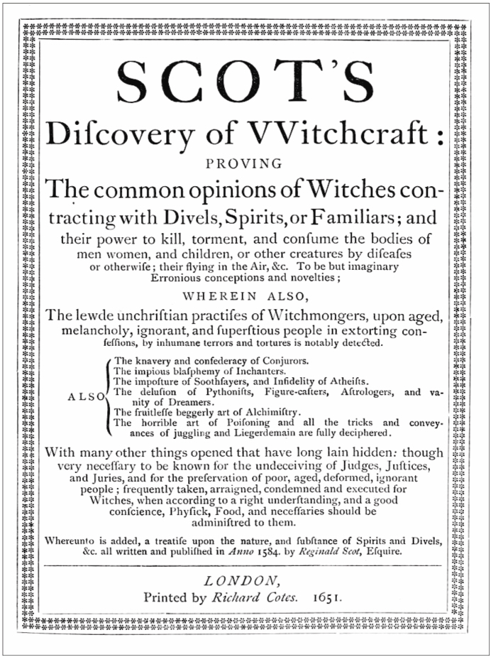 Portada de The Discoverie of Witchcraft (edición londinense de 1651).