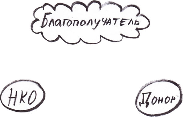 Заметьте, НКО – это не Благополучатель! Они в нашем треугольнике живут отдельно.