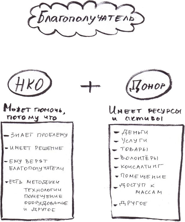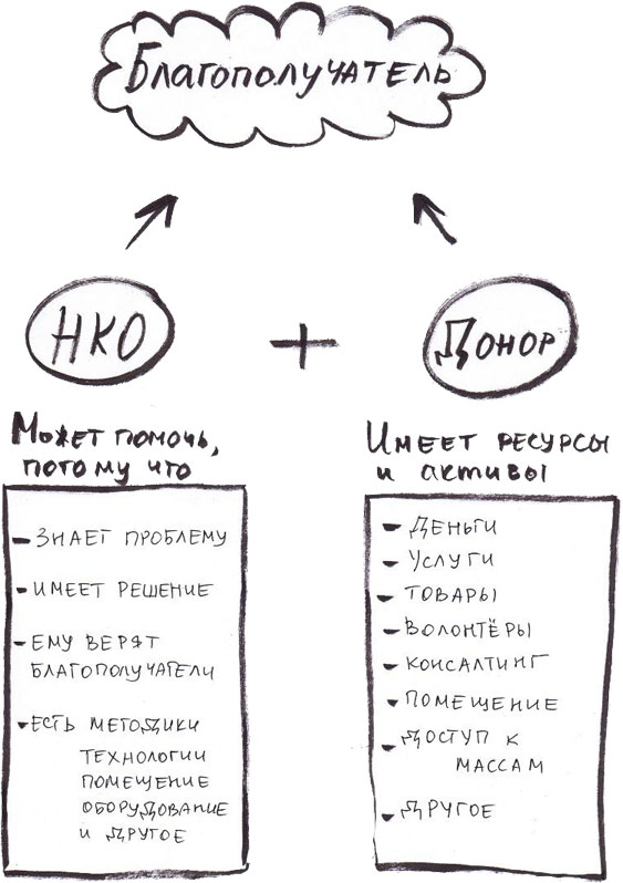 И это будет уже не просьба, а предложение-приглашение! Поэтому на рисунке 2 между НКО и Донором появляется знак «+».