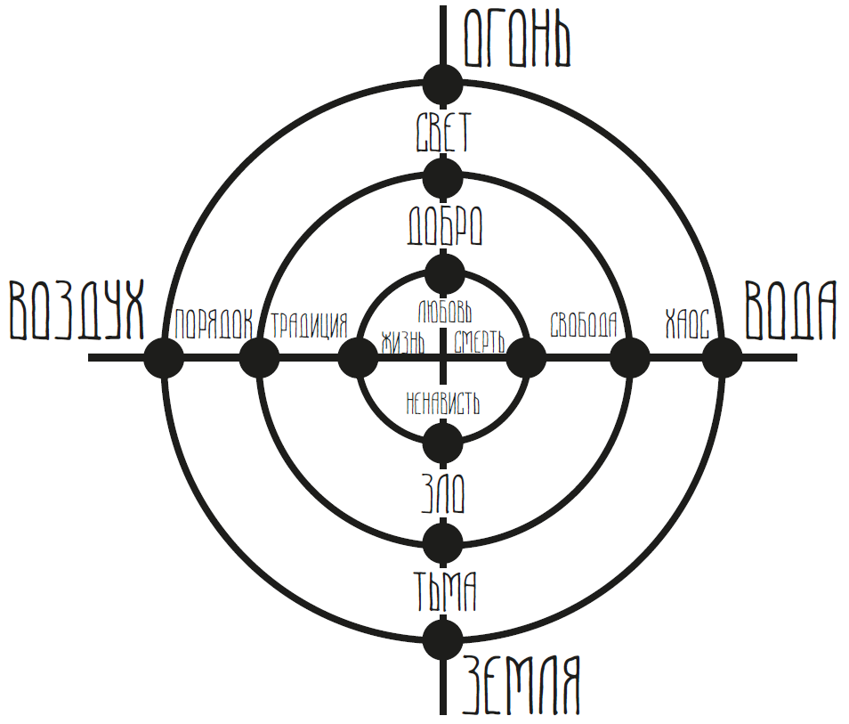Таким образом, человеческий мир Мидгарда находится между четырьмя базовыми информационными и энергетическими структурами: