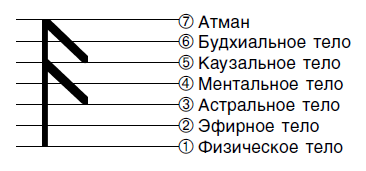 6. Часть внимания смести в Свадхистана-чакру (темечковая). Под углом в 45 градусов вниз проведи вектор в Каузальное тело (проекция с Вишудха-чакрой).