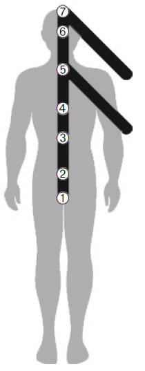 7. Из Вишудха-чакры (горловая) проведи еще один вектор вниз под углом 45 градусов до проекции с Манипура-чакрой (солнечное сплетение).