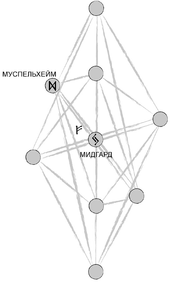 Внимательное рассмотрение Древа Иггдрасиль поможет увидеть, что это не что иное, как схема, схема взаимодействия миров. Те связи, которые прописаны рунами, доступны к познанию и управлению; те же, что не прописаны, есть, но человеку ими управлять не дано. Древо Иггдрасиль много рассказывает и о самих рунах, и об их сакральном смысле. Руны Старшего Футарка прописаны на Древе все, а некоторые даже дважды. Последние, числом девять, называются «необратимые руны» и выполняют в системе двойную функцию – как ключ и как связь. Ключ к открытию информационной мощи своего мира, и связь между мирами, информационными базами данных. Руны «обратимые» отражают только связь.
