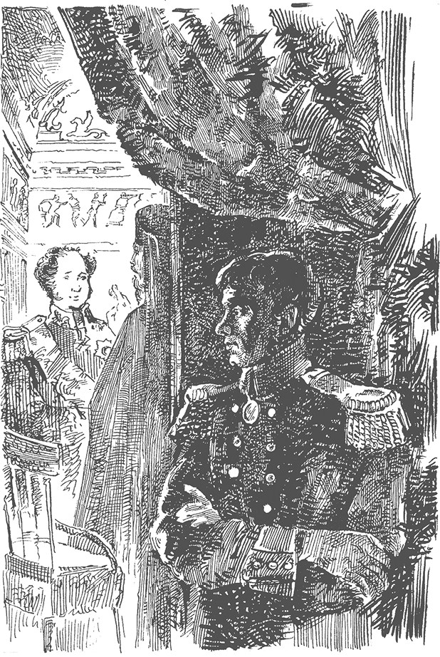 Наконец погрузились в бесконечное рассуждение о том, как на обшлаге нового мундира егерского вместо зубчатой вырезки клапана сделать прямую и вместо трех пуговиц – пять.
