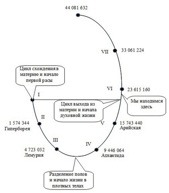 Ниже приведена схема эволюции рас. Для это нужно знать? Для того, чтобы понять на каком этапе эволюционного развития человечество находится сейчас. Смена рас является важнейшим историческим моментом. Тот, кто внимал ему, продолжал свою эволюцию, тот, кто никого не слушал – деградировал, опускаясь на огромные ступени эволюционной лестницы вниз, и даже, исчезая совсем. В такие моменты человечеству всегда давался мощный импульс к правильному эволюционному развитию. И этот импульс давался пророками и мессиями.