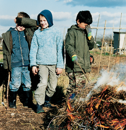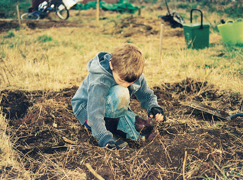 I eventually manage to lift my leg high enough to get it over the crossbar of my bicycle and, with a genuine feeling of goodwill, I very slowly make my way up Boston Road to the allotment. Dilly and Doug are there starting on a bed their side of the divide; MJ is digging away and all the kids are charging about, filthy, and having a great time.