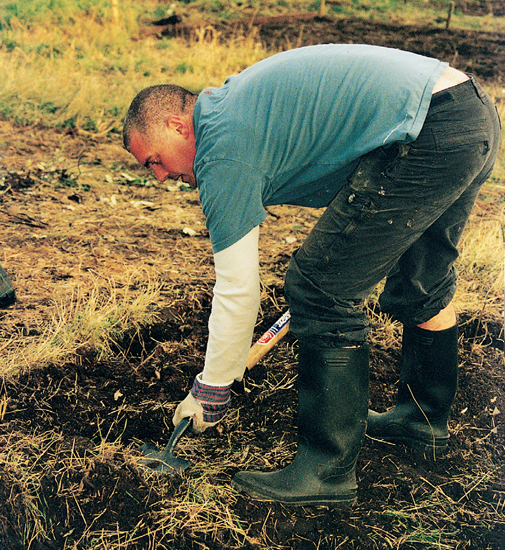 Having told MJ that I am sorry for my anti-allotment tendencies and reaffirmed my commitment, I grab the shovel and, with a look of resolve in my eye, I throw myself into the task in hand. On the third dig I fall to my knees in complete agony – I literally crumple up; my back clicks and gives way and I am so sore I can hardly move. I have been there for ten minutes and am now reduced to a writhing wreck. I feel a complete fool as MJ and Doug carry me to the car to take me home.