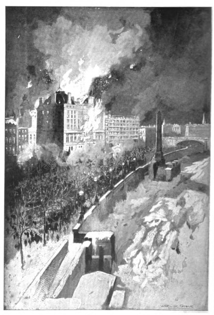 На Стрэнде было светло как днем. Огромный столб красно-белого пламени устремился далеко в небо, ровный гул от него напоминал шум прибоя на каменистом берегу. Постоянно раздавался треск, похожий на мушкетную стрельбу.