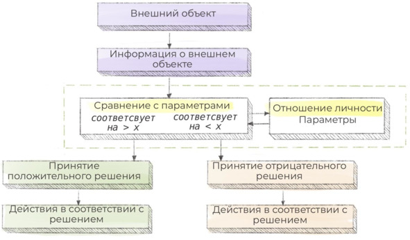 Глядя на схему, очевидно, что принятие решения напрямую зависит от того, насколько информация об объекте/субъекте соответствует представлениям человека об этом объекте/субъекте.