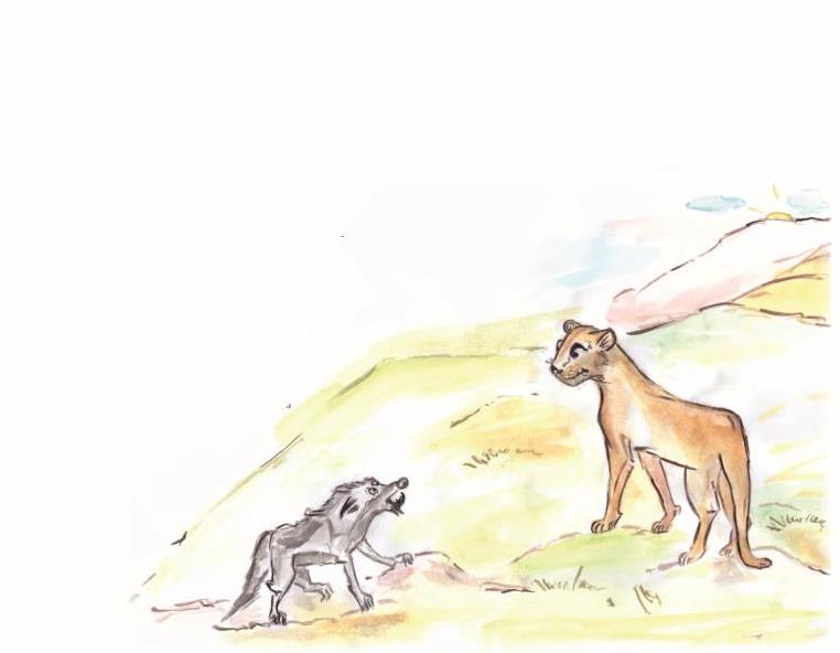 Утром рано в поле львицаНа траву тихонько прилегла.«А ну вставай! – явилась тут волчица. —Моя земля тут, не твоя!Мои тут властные угодья!Уходи, не то тут я…»Львица встала, выпрямилась вся,Была волчицы больше раза в два.Зверь-то серый испугался,Великан ведь, исполин!«Ладно уж, пойду отсюда я, —сказала львица. – Не павлин!»Прежде чем напасть на жертву,Ты, читатель, присмотрись.Силы могут быть неравны,А то потом поди лечись!