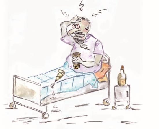 Весенним днём, когда снаружи грязь,Достал в аптеке себе мазь,Чтоб борода росла быстрееИ считали всех умнее.Вот помазал себя раз,Не послушав их наказПрочитать инструкцию,Как применить продукцию.Ничего не изменилось.Тогда уж мысль зародилась,Что купил совсем не то,Зря потратил серебро.Помазал два, помазал три —Зачесалось тут внутри.Кровью налились глаза,Потекла по рту слюна.Стало что-то плохо мне…Может, это всё во сне?Побегу в больницу,Усердно буду я лечиться.В палату поместили,Чаем сладким напоили.Касторку выпил и теперьПолетел скорей за дверь.Сидя ночью, я не спал,Много книжек прочитал.Наутро полегчало,И жизнь пошла сначала.Коль умишка было мало,Борода не вырастала.Буду думать наперёд,И она ещё взрастёт!