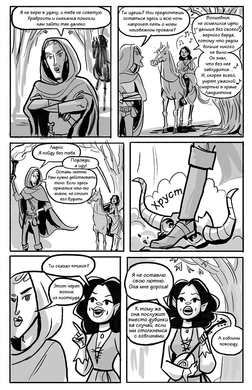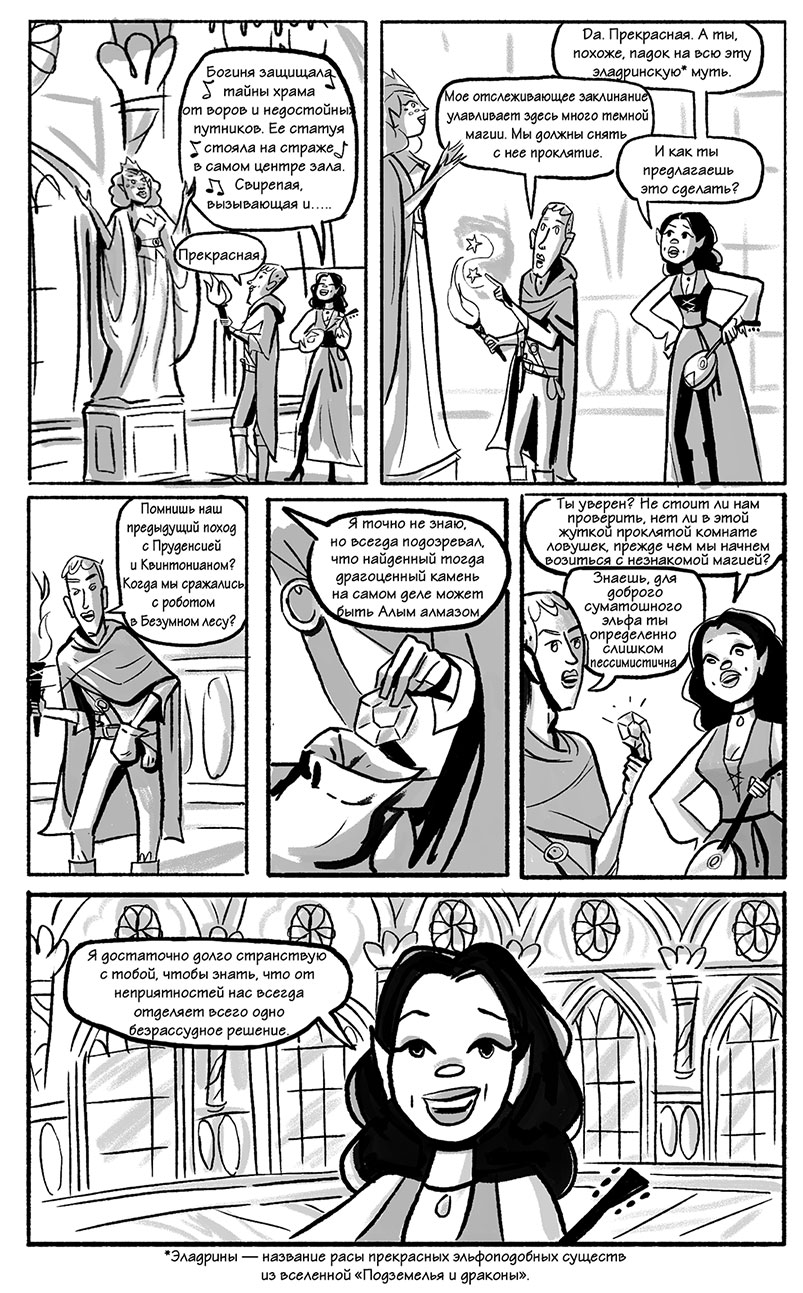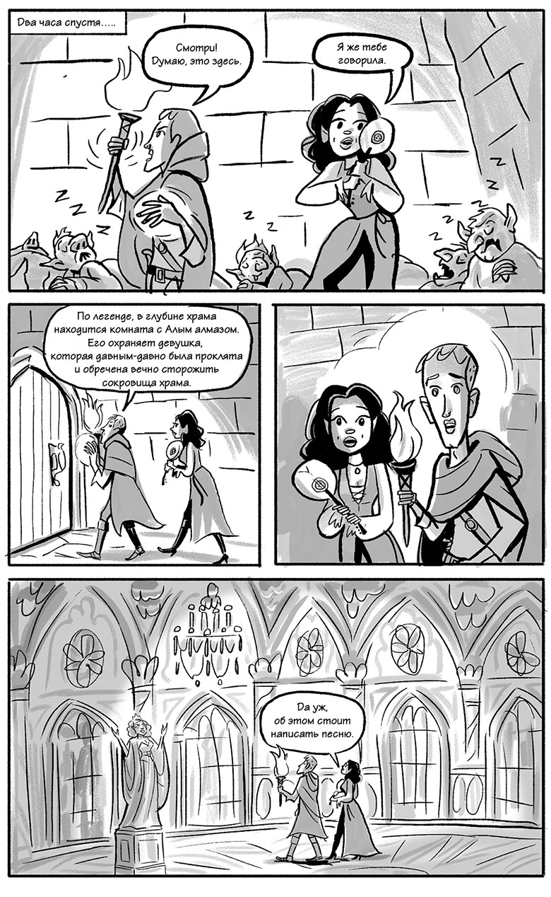 Я улыбаюсь и опускаю взгляд на свой альбом для рисования. Бард и волшебник – два персонажа, которым еще вчера не находилось места в моей новой кампании, но теперь мне самому интересно, куда заведет их история. Раньше я не знал, как завлечь группу на квест, но теперь с помощью барда как неигрового персонажа[35] можно рассказать им о таинственном храме, волшебнике и проклятии. Может, она отдаст им Алый алмаз и…