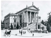Das imposante Sempersche Stadthaus Winterthur an der Kreuzung von Lind- und Stadthausstrasse. Postkarte von 1908.