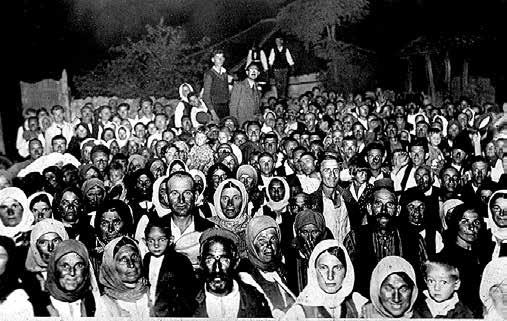 Драголюб Иованович (в центре на возвышении) среди крестьян в местечке Гнилане в Косово. 1935
