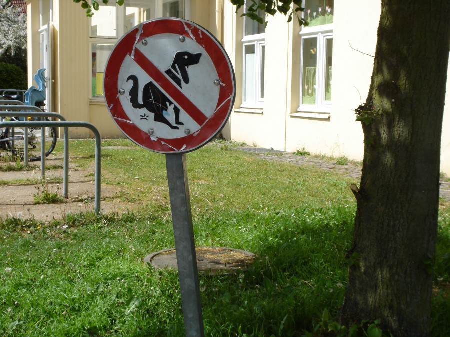 В немецком Любеке – целый дорожный знак для собак и их хозяев, в надежде, что либо те, либо другие поймут без слов.