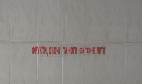 Я сначала подумала, что неправильно перевела с украинского. Когда приехала, проверила по словарям – все правильно. "Овощи, фрукты и ноги (обутые) не мыть!"