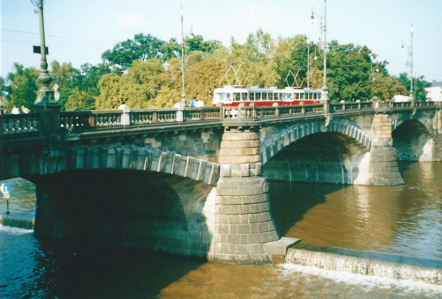 А вот Карлов мост выстоял. Хотя историки тогда писали, что за все время существования Карлова моста вода переливалась через него только дважды, но вот в 2002 году перелилась так, что на исторически ценный мост никого не пускали, пока экспертиза не установила, что он цел и годен к эксплуатации. А этот мост относительно новый, по нему спокойно ходили и трамваи, и люди. Но по опорам видно, насколько выше обычного вода – метра на два-два с половиной точно, и это уже на третий день падения уровня.