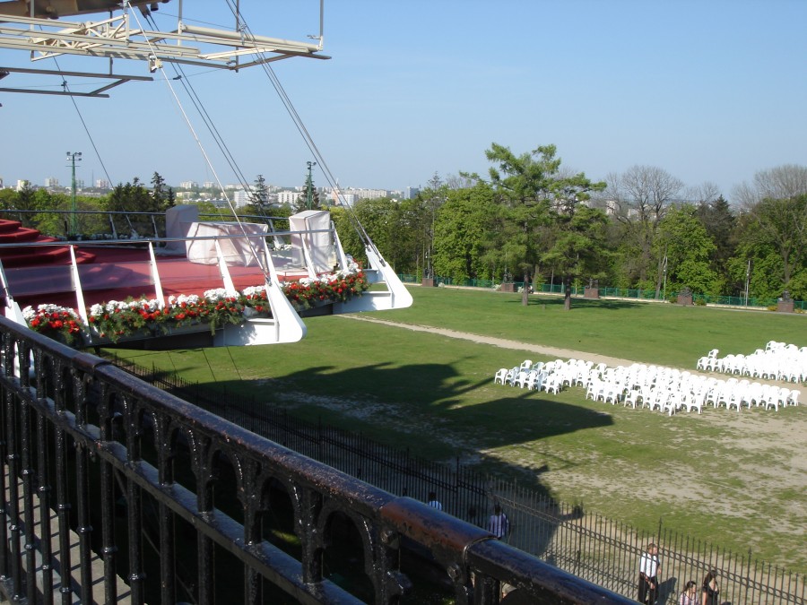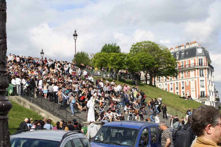 Публика расселась на лестнице и смотрела на Париж сверху и на уличных артистов, которые выступали на площадке внизу.