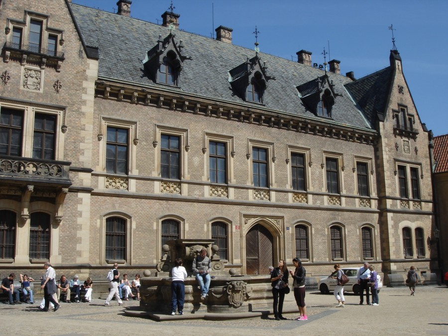 Здание, чья крыша изображена на крышке, мы тоже видели – вот оно. Часть дворца в Граде, внутри – высокий рыцарский зал, в который можно было въехать на коне и где в старину во время плохой погоды устраивались рыцарские турниры.