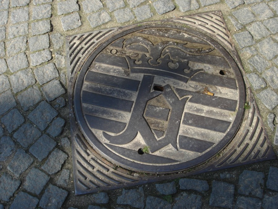 И канализационные крышки. Такие же и в большинстве немецких городов.