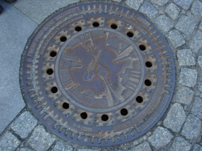 В Берлине тоже есть на что посмотреть. Любимая телебашня города в тот год была расписана признаниями в любви к городу (их писали профессиональные художники, любителей граффити к этому процессу не подпустили). И она же, телебашня, увековечена на крышке городской канализации.