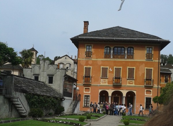 Однако потом у меня завелся современный телефон с записью видео, и два года назад, бывши в курортном городке Орта на севере Италии, я кое-что успела и снять и записать. Как нам объяснил наш сопровождающий, в Орте есть клуб любителей хорового пения, и они поют по всем торжественным случаям в городе, ну и для собственного удовольствия по обычным дням. Вот так выглядело здание, где этот клуб занимается (оно рядом с местной мэрией, которая, кажется, финансирует его деятельность), и около него как раз видны участники – они вышли на улицу как раз тогда, когда и мы были рядом.