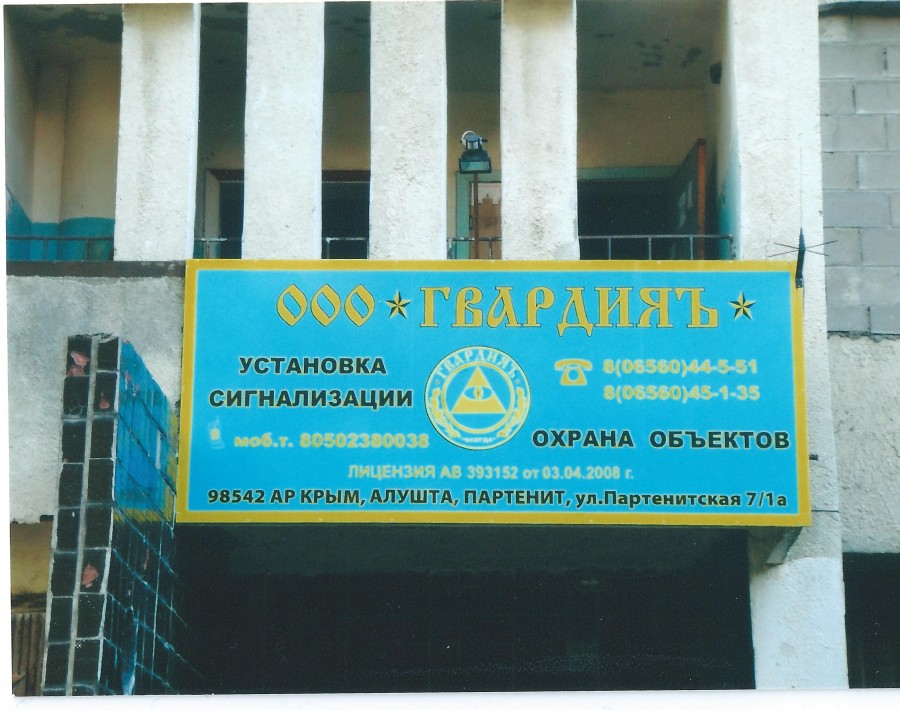 Впрочем, и вдали от столиц бывают чудеса наименований. Например, вот эта охранная фирма в крымском Партените.