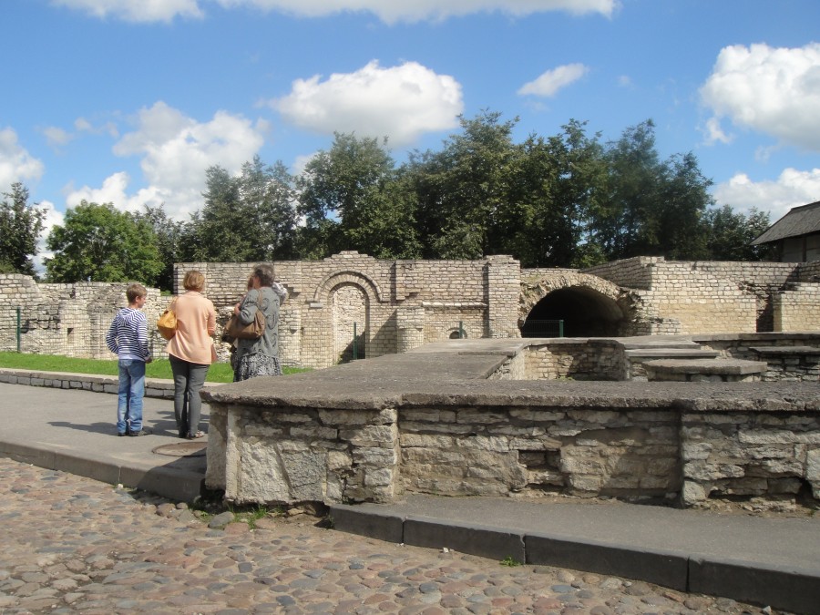 Часть Довмонтова города тогда только раскапывали археологи – сидели полтора десятка студентов во главе с двумя преподавателями под дождем и увлеченно мели метелочками и откидывали совочками в сторону землю под взглядами любопытных экскурсантов. Теперь раскопанное ими не только открылось, но и восстановлено, как оно когда-то было – из местного светлого камня-сланца, добытого там же, где брали его в старину.