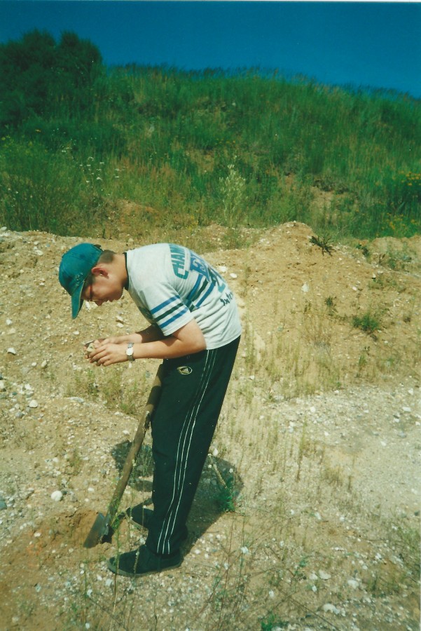 А потом сын с друзьями устроил целые раскопки в ближайшем к нам заброшенном карьере. Карьер был небольшой, сейчас он уже совсем зарос, а тогда склоны были очень крутые и опасные. Чтобы ребята не устроили обвал и не обрушили на себя гору песка, я тоже с ними ходила. Искали усердно.