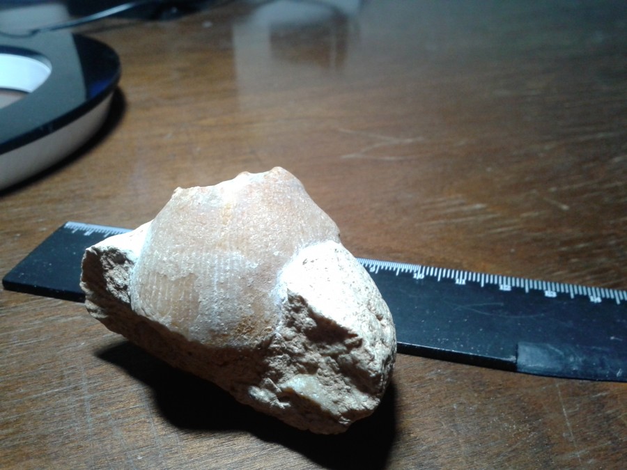Впрочем, не всем отвалам от канала так повезло. Во многих местах устроили карьеры и развозили грузовиками песок по всему району. Карьеры уходили в глубину намного глубже канала. С их дна экскаваторы выворачивали песок и камни древнего моря, которое было здесь когда-то. А вместе с песком и камнями шли окаменелости. Когда мой сын был подростком, в большой моде был "Парк Юрского периода", и все дети, а с ними и взрослые, увлеклись динозаврами и прочей древней живностью. И хотя в наших местах на динозавров рассчитывать не приходилось, мы занялись раскопками. Все началось с отпечатка улитки-аммонита, который я нашла на камне из кучи щебня, лежащей у соседского забора на дороге. Таким он стал, когда я его отмыла.
