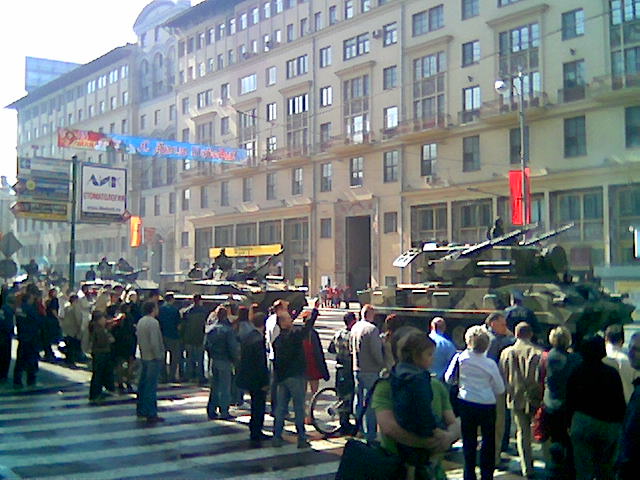 И видно, я была не одинока, потому что все, кто сидел у нас в этот день в отделе (десять человек, самое меньшее) помчались бегом к Тверской. Фотоаппарата у меня с собой, конечно, не было, но плохонький фотоаппарат был в телефоне, я так с телефоном и побежала.