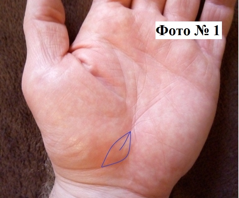 Как-то я прочёл книгу по хиромантии и нашёл у себя на руке очень «плохой знак» (лепесток), который по хиромантии означает «блокировку жизненной энергии» Фото №1. И, судя по размеру моего «лепестка», эта блокировка просто-таки абсолютная, что, собственно, и подтверждается некой «связанностью по рукам и ногам» моих действий и желаний. Поэтому я, недолго думая, поступил почти так же, как в своё время поступил Александр Македонский с Гордиевым узлом – с помощью ножа я решил продолжить линию на ладони, чтобы радикальным образом исправить значение знака, выведя свою жизненную энергию за пределы блокировки «лепестка». Но через какое-то время этот знак увеличился, то есть он удлинился, снова замкнувшись, а его значение с точки зрения хиромантии по-прежнему сохранилось! Я думаю, этот пример довольно наглядно нам демонстрирует способ, которым мы должны решать подобные задачи. Их следует «распутывать» посредством понимания их истинных причин, что, в свою очередь, гарантирует нам стабильный результат в их решении.