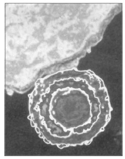 Различные представители герпесвирусов имеют ряд общих особенностей в строении вирионов, размер которых можно определить под электронным микроскопом (рис. 1). У герпесвирусов он колеблется от 150 до 300 нм. Для них характерна форма в виде шара.