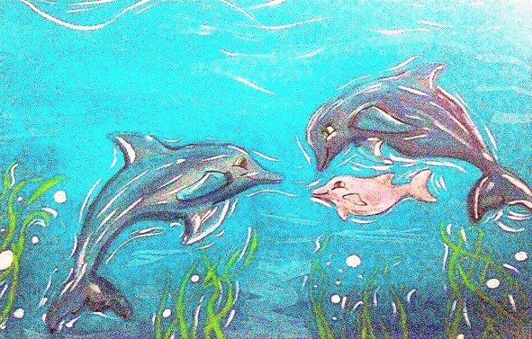 Однажды, в лазурном – лазурном море, что растянулось на краю синего – синего океана, у мамы Дельфинихи и папы Дельфина родился маленький сыночек Дельфинчик.