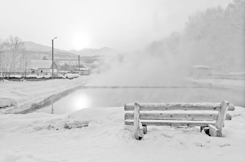 Место сказочное. Просто сказочное. Кругом сопки. Горячая лужа, которую забетонировали, и она стала бассейном. Эвенкский район. Живут тут ламуты (т. е. эвенки), как их называет Каянта – «камчатские евреи». Район чуть ли не самый маленький – всего три села.