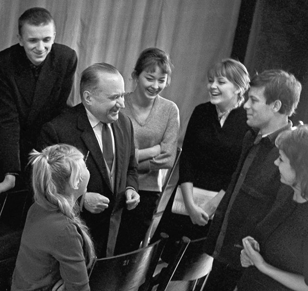 Народный артист РСФСР Борис Захава (в центре) со студентами театрального училища имени Б. Щукина. 1964 г.