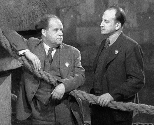 Сергей Эйзенштейн (слева) с Михаилом Роммом (справа) в павильоне киностудии «Мосфильм». 1940 г.