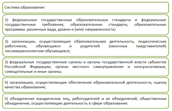 Статья 10 Федерального закона от 29.12.2012 №273-ФЗ «Об образовании в Российской Федерации» определяет систему образования (рис. 1.3.1.).