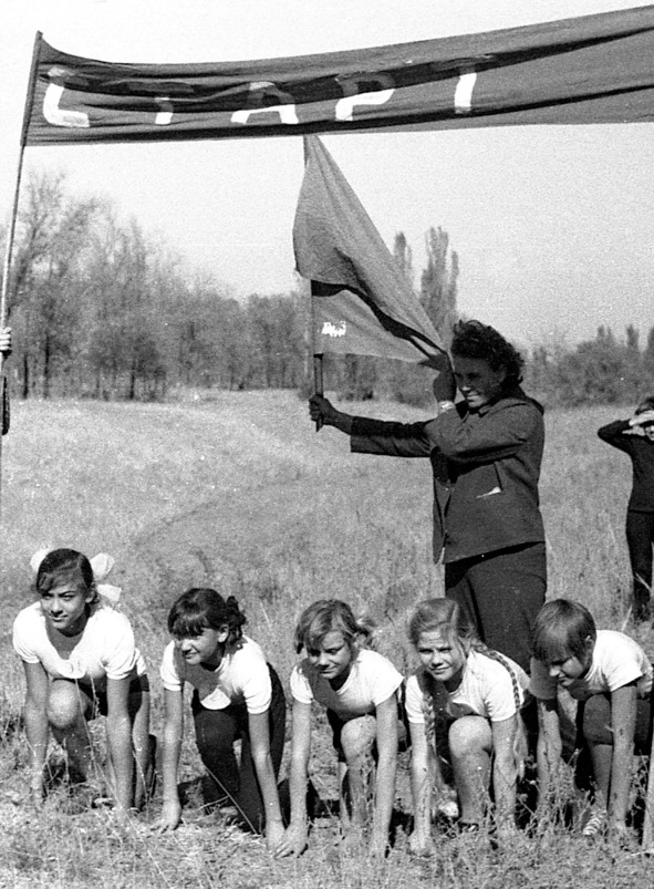 Середина 1960-х. Школьные соревнования по лёгкой атлетике на открытом воздухе.