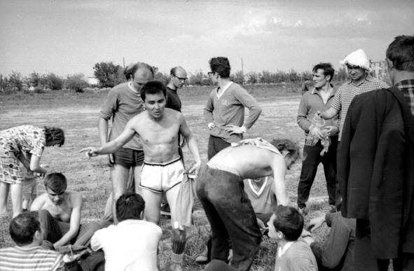 Конец 1960-х. Футбольная баталия на стадионе Посёлка. Стадион, кстати, построили своими силами, на субботнике.