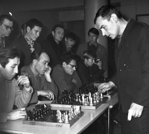 1968 год. Алма-Ата. В тот год у нас проходил чемпионат СССР. Гроссмейстеры успевали давать и сеансы одновременной игры многочисленным любителям.